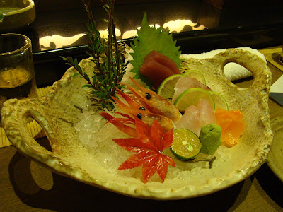 縱合生魚片,牡丹蝦、黑鮪魚and竹筴魚嗎?右邊的魚肉真的很像上次和幸吃的竹筴魚,但不確定...魚肉很有彈性且新鮮,因為討厭鮭魚所以這一盤縱合生魚片裡當然絕對不會出現鮭魚,牡丹蝦真的你來幾支我殺幾支,連最腥的蝦頭我都啃了,但既然一點腥味也沒...這...不囧了