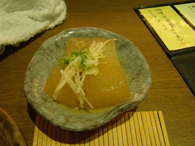 這是前菜,冬瓜+些許薑絲and蔥,真恨妳只給4塊,清清爽爽口感極佳,一下就沒了,後來看到晚來的客人其小菜是不一樣的,好似小黃瓜之類的。